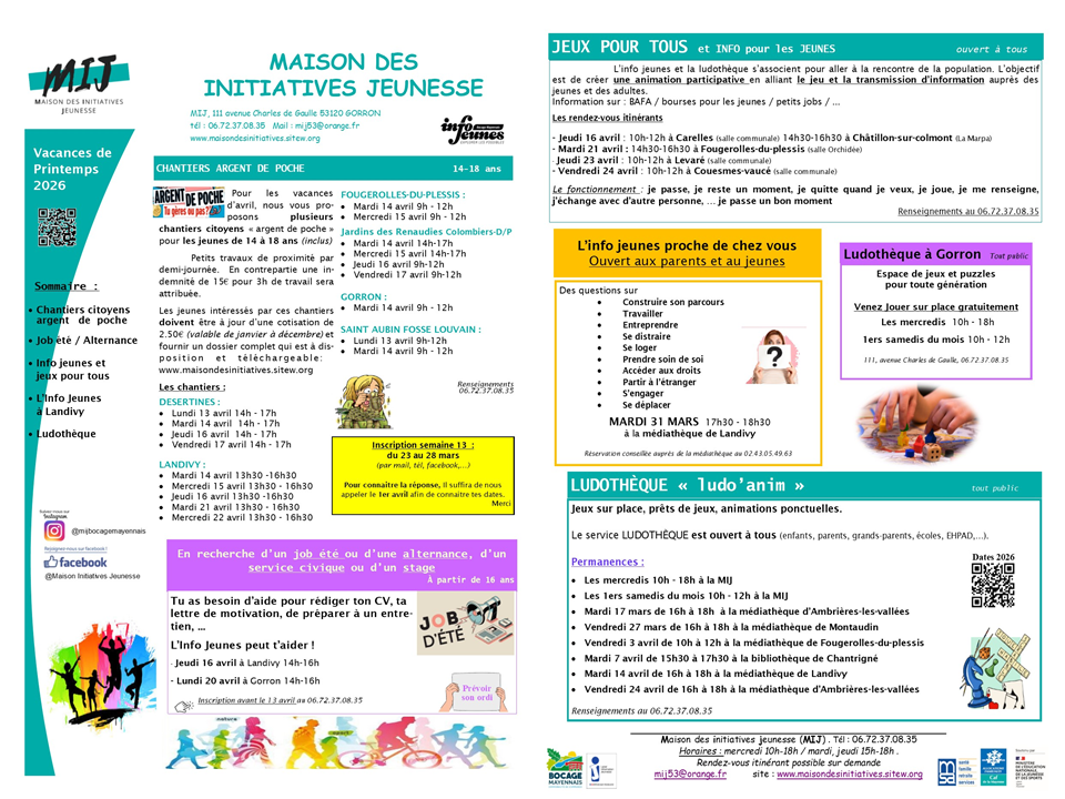 Tout le programme pour ces vacances proposé par la M.I.J. de GORRON ci-dessus ou en cliquant sur ce lien
